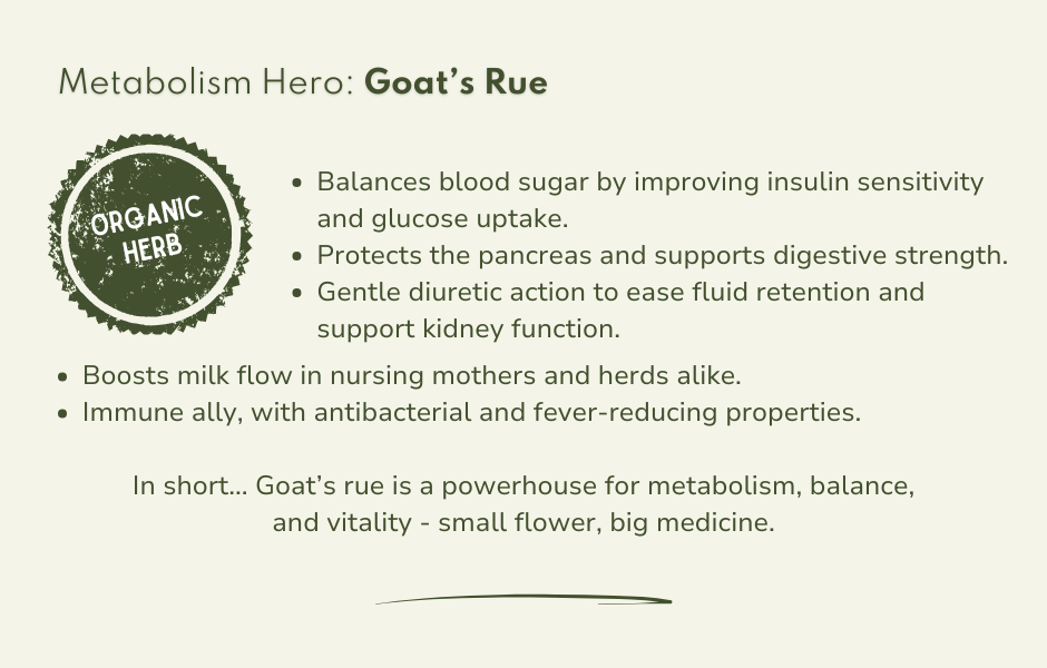 Today, goat’s rue is still prized for its blood-sugar balancing magic. It helps improve insulin sensitivity, encourages glucose uptake in muscle and fat cells, and supports the pancreas in producing insulin. This makes it a steady ally for those managing metabolic syndrome, type II diabetes, or weight concerns (though, of course, never without the guidance of a qualified practitioner if paired with medication).