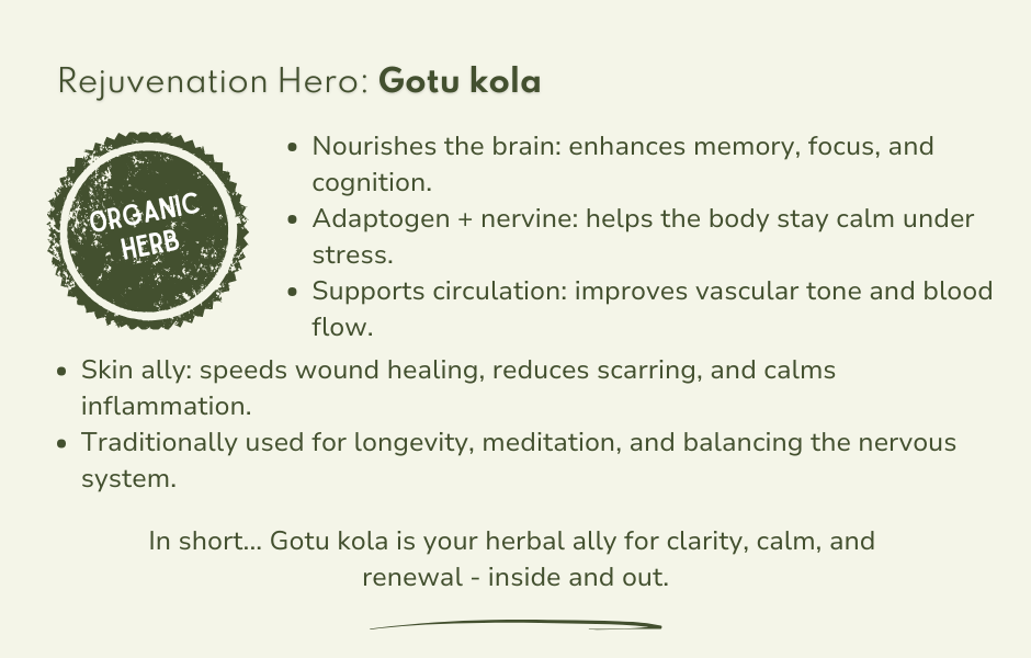 Modern research backs up these ancient insights. Gotu kola works through modulation of GABA, the calming neurotransmitter, which explains its anxiolytic and nervine qualities. It has shown promise in conditions ranging from anxiety and ADHD to cognitive decline and dementia, with studies suggesting it helps break down β-amyloid plaques and improves neuronal resilience.